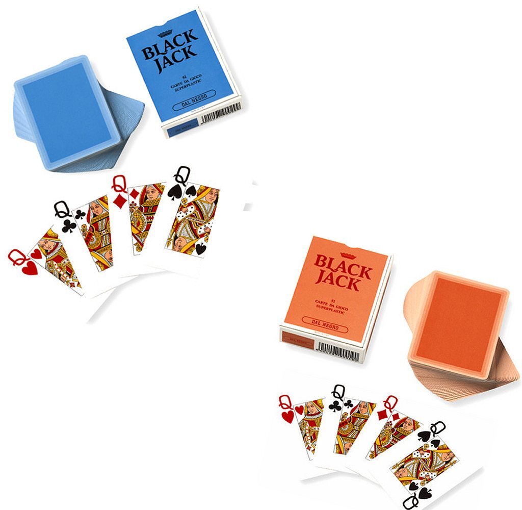 Pair of Dal Negro Blackjack Playing Cards (1 red back, 1 blue back, 100% plastic)
