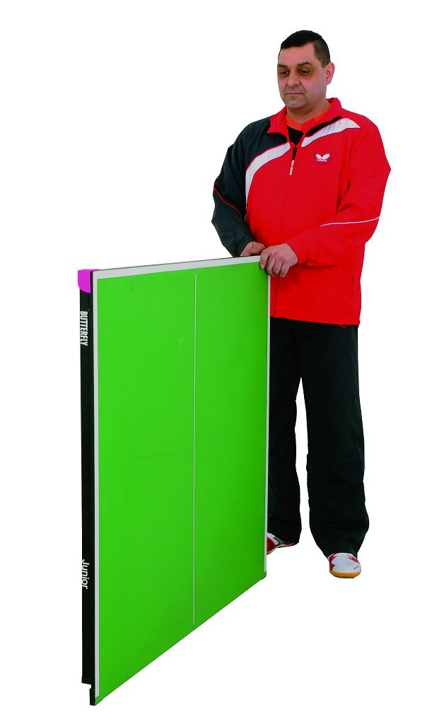 The 3/4 size Butterfly Junior table tennis table is ideal for use in primary schools and homes where a full size table would take up too much room. It is also good for storage with the two halves folding together to take up a width of less than 6 inches.