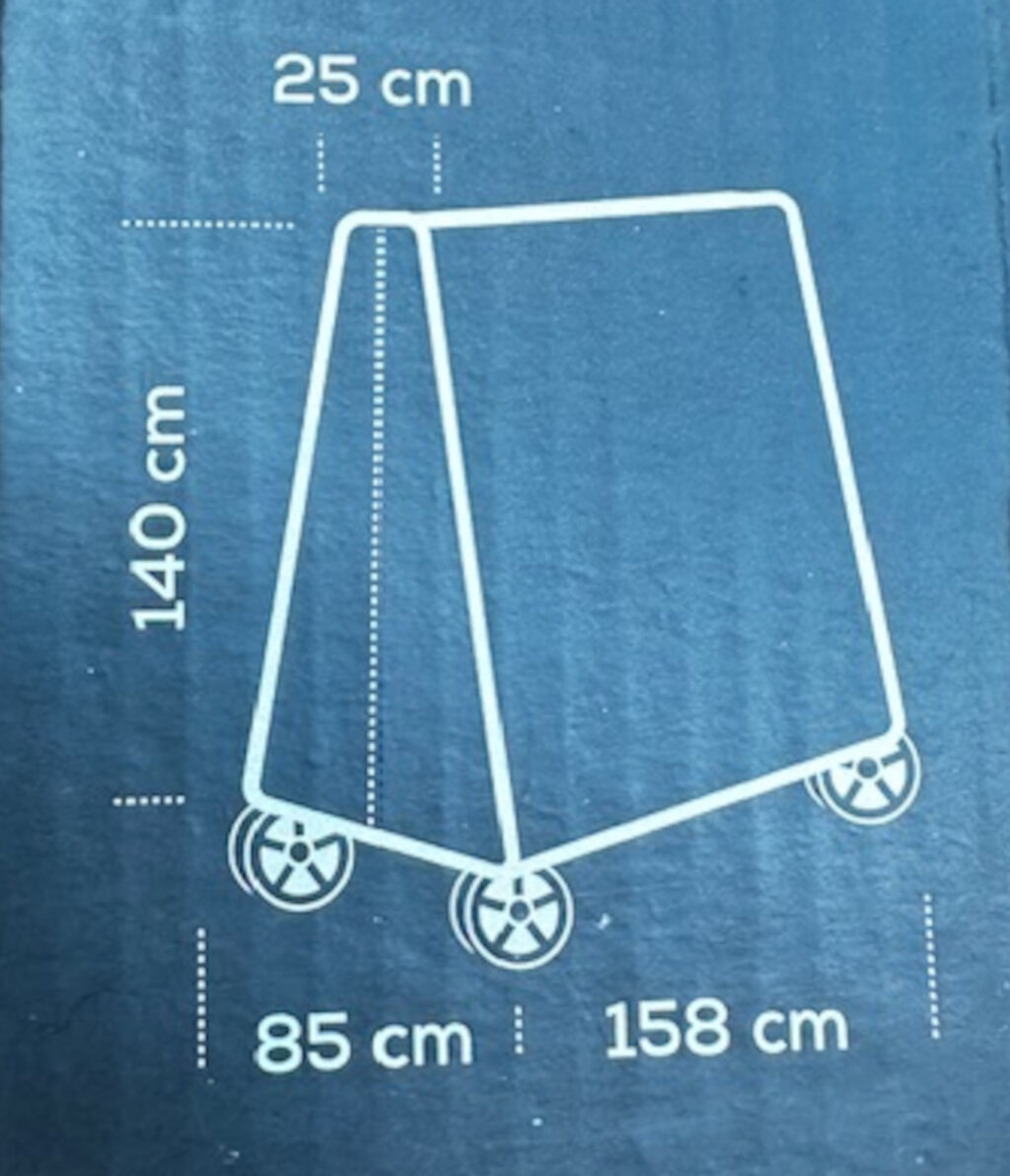 The dimensions of this cover are 158cm length x 85cm width x 140cm height with the top width being 25cm.