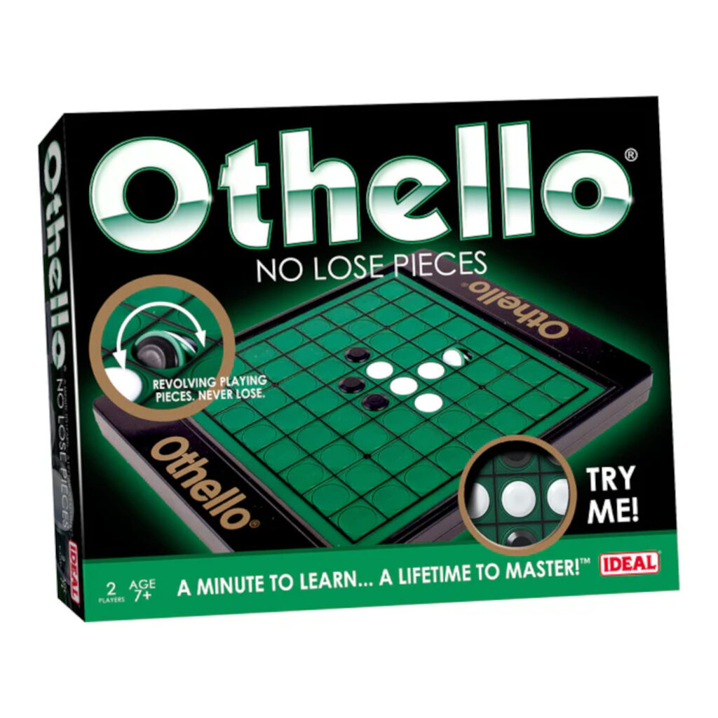 This internationally loved two-player strategy game now comes with clever rotating pieces that stay attached to the board, so you never have to worry about losing a piece. Players take turns placing their disks to trap and capture their opponent, flipping any pieces they sandwich to their own colour.