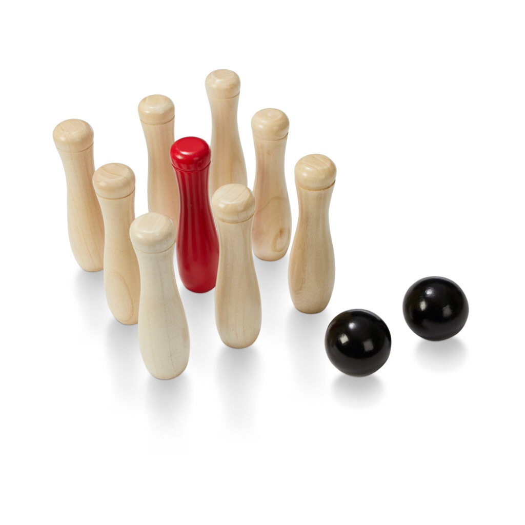 Bring the fun of skittles to your home! The aim of this traditional bowling game is to knock all the skittles down with as few attempts as possible.