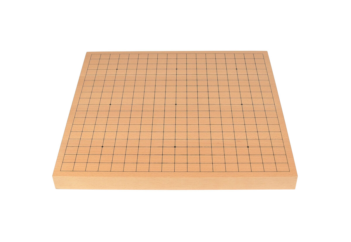 As with all genuine Go boards, the 19 x 19 grid is slightly longer than wider. Composition wood core with a beechwood veneer. The opposite sides of two edges of the board are made of real wood showing a realistic end-grain giving the impression of a solid wood board.